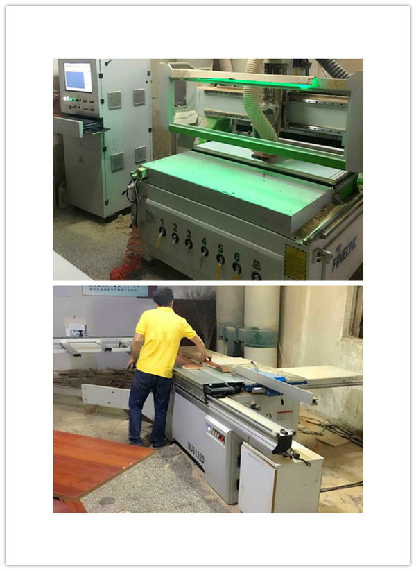 從簽訂正式合同下單開始,整個的流程有:設計師復尺寸——車間師傅拆板,核對板材數量——數控鋸裁板——封邊機封邊——打孔機打孔——安裝預埋件——預裝——打包入庫——發貨安裝。