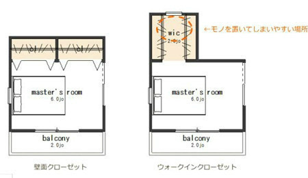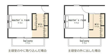 如上圖中間的例子,雖然是L型布局,但是因為轉角處存在障礙,事實上這個部分也常會堆積雜物。相比之下,不妨將難以利用的轉角部分作為從外部利用的小衣櫥或收納空間來利用(上圖右)。