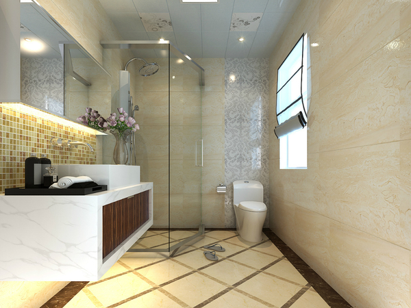 3.衛生間隔斷墻面材料:浴室的墻壁面積大,須選擇防水性強,又具有抗腐蝕與抗霉變的材料。容易清洗的瓷磚、大理石、馬賽克等花色多,可拼貼豐富的圖案,且光潔平整易干燥,是非常實用的壁面材料,但要注意與地面材料色彩相統一。