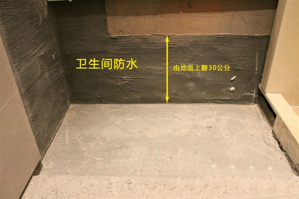 做好防水,衛生間的防水很重要。噴頭兩側墻面要做到1.8米高的防水,面池區1.2米,其余上反0.3米,以防止水浸透墻面,造成墻面發霉,地面則要全面做防水。