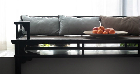 根據飄窗的進深和高度,特意設計的中式臥榻