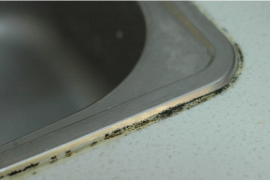 第二、水盆和臺面間的臺面膠處理工藝(由液體涂抹,它會冷卻固化后,起粘結和定位作用,粘牢后用手掰都掰不下來)。