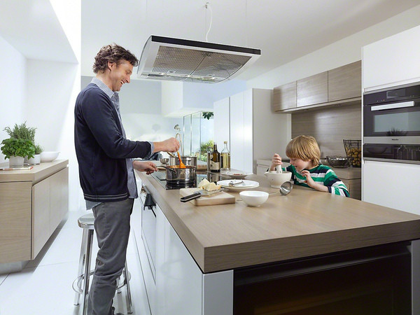 如果預算更高,可以看看喜聞樂見的Miele,比如DA5320W、DA5390W(頂吸),以及隱藏式設計、極具現代感的DA5000D(下圖),這三款風力都達到了驚人的21.7m3/min。價格在2~3w不等,油煙機的預算都到了這個級別,就不要想著鐵殼子+電風扇那種畫面了……