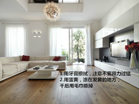 1、問題:白色家具變黃處理方法:家具表面的白色油漆,日久會變色,可用抹布沾牙膏抹試,注意不要用力過猛,也可把兩個蛋黃攪勻,用軟刷子往發黃的地方涂,干后用軟布小心抹干凈就可以了。