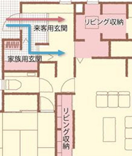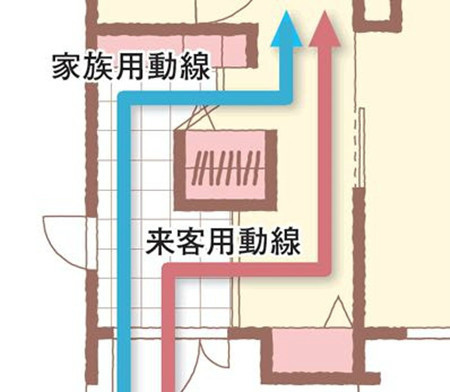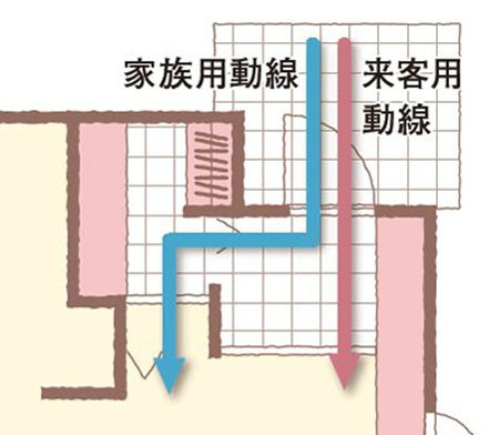 玄關(guān)的流線設(shè)計(jì):家人和客人的流線分開(kāi),并設(shè)置不同的鞋柜收納空間