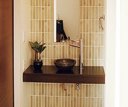 特別是對(duì)于養(yǎng)著寵物的主人來(lái)說(shuō),回家進(jìn)門(mén)能洗手也是非當(dāng)貼心的設(shè)計(jì)。在玄關(guān)設(shè)置一個(gè)有設(shè)計(jì)感的洗手池如下: