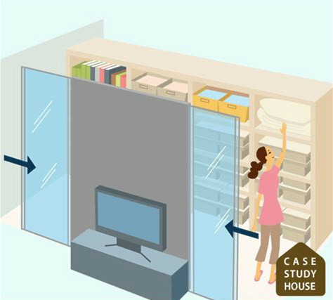 客廳說(shuō)亂七八糟都可以很快的收納到里面,非常便利。突然來(lái)客人的時(shí)候也能很快的收拾屋子。