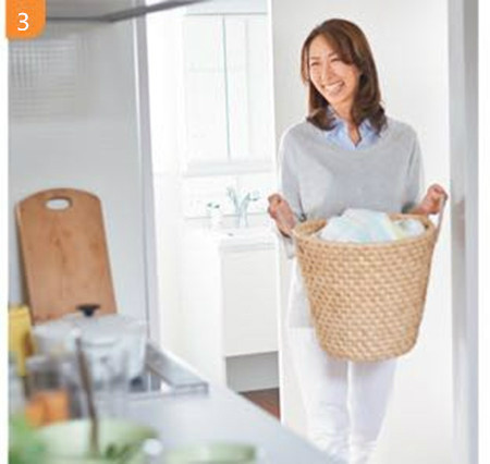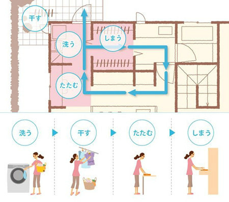 設(shè)計(jì)的時(shí)候就充分考慮從洗衣到晾曬空間到折疊到收納的流線,例如圖中的布局,洗衣房連著陽(yáng)臺(tái),洗完可以直接拿出去曬,收回來(lái)疊好直接放進(jìn)服裝的儲(chǔ)藏室。